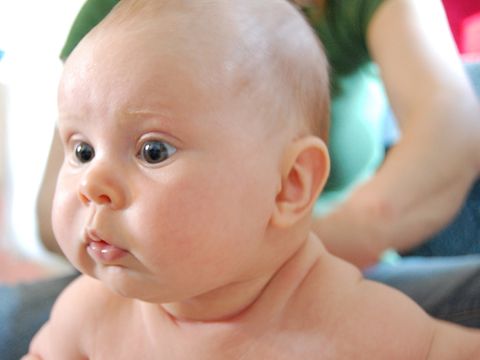 ぐるぐると円を描くように、ゆっくりとさすります。それから首回りを撫でたり、肩から手先までをソフトタッチで触ってあげるのがオススメです。やさしく、赤ちゃんが気持ちよくなる動きを見つけてあげましょう。
