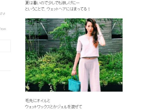 昨年ごろから、お洒落な人の間で流行っているヘアスタイルが、お風呂上がりのような色っぽさを演出できる“ウェットヘア”。“濡れ髪”とも呼ばれ、水に濡れたようなツヤを出すスタイルです。芸能界でも取り入れている人は多く、タレントの河北麻友子もウェットヘアをブログで披露。「夏は暑いので少しでも涼しげに、ということで、ウェットヘアにはまってる!」というコメントと共に、1枚の写真をアップしました。下ろしたロングヘアはウェーブがかかっているのですが、ツヤ感と濡れたようなまとまりがあり、どことなく大人っぽい雰囲気です。これにはファンからも「かわい~!」「セクシーだね! 私も真似したい」と絶賛の声が。