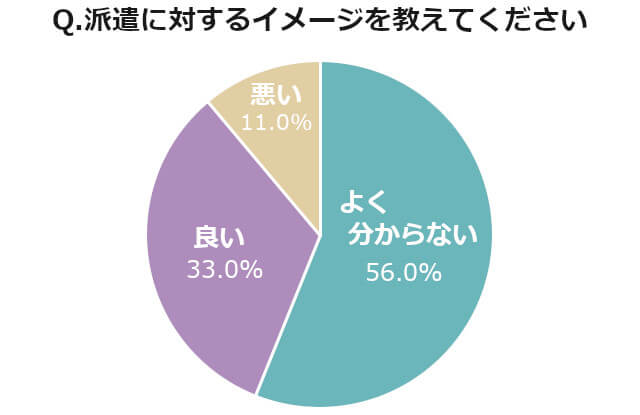 以前美プロ内で「派遣に対するイメージを教えてください」というアンケートを実施した際に、半数の人が「よく分からない」という回答をするという結果に!(グラフ参照)本当は多くのメリットがあるのに、知らずに避けてしまうのはもったいないですよね。