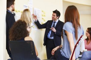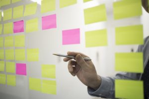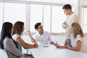 ブレインストーミングにはリーダーと書記が必要です。リーダーは会議をスムーズに進めるのが役割のため、自分のアイデアを発表することはなく、参加者に話を振ったり意見をまとめたりします。書記は出た意見をホワイトボードにまとめる役割です。アイデアの要点を簡潔にまとめるようにしましょう。リーダーと違って積極的に意見を述べても構いません。