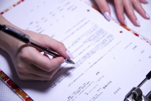 次に、カウンセリングカルテを用意して、お客様に記入していただきます。カウンセリングカルテの中には、なりたい目元の雰囲気やまつ毛のデザイン。現在の体調やアレルギーなど、お客様の健康に関する記入をしていただきます。また、施術に対しての規約同意書に署名して頂く欄も必ずありますので、カウンセリングカルテに沿って記入漏れなどがないかも確認していきます。