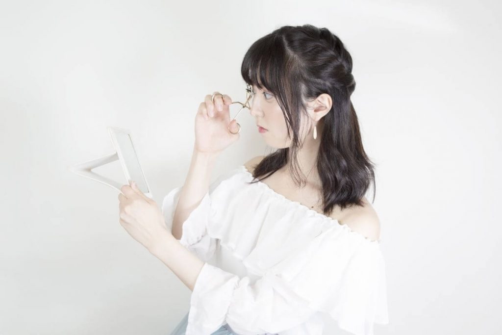 また、あごを引きながらビューラーを使用し、特に根元はしっかり挟んで待ちましょう。ビューラーを強く握りすぎると、まつ毛が抜けたり不自然なカールになったりするので注意が必要。力は入れすぎずに、何度か繰り返すようにして下さいね。