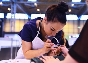 - 試し紙の上で、色の出方を確認してから、爪の上にポンポンと叩き込みながら、色をつけていきます。