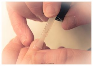 - 次に、ファイルで爪表面の凸凹を削って平らにします。