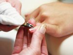 - ベースコートを塗って乾かしたら、爪全体にホワイトのネイルカラーを塗ります。