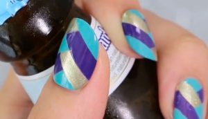 - 爪の右側から金のポリッシュを半分くらい重ねる。