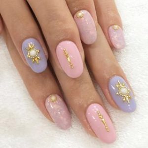 ちょっとガーリーに仕上げたいなと思ったときには、ラベンダーカラーとピンクの組み合わせが◎。王道ガーリーに仕上げてくれるのですが、それはそれで甘すぎる…。となってしまった人は、根元にスタッズを施すと、大人の印象に早変わりしますよ。ぜひ試してみてください。