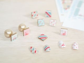 一人ひとりの爪の細かなサイズに合わせるために、シートにはサイズの異なるシールが多めについています。そのため、毎回シールが余ってしまうのですが、これらのシールをDIYアクセサリーに利用すれば、ネイルとお揃いのピアスなどを作って楽しむこともできますよ。