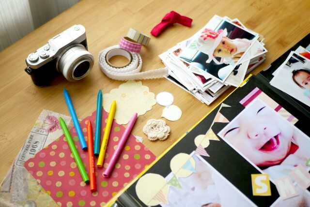 写真の現像は1枚につき10円程度、フォトアルバムも1冊1000円程度で購入することができます。自分で写真を切り貼りするという手間はあるものの、手作りだからこそのオリジナリティを出すことが可能に。こだわって作れば思い出にもなるので、ぜひ親族へのアルバムは手作りをしてみましょう。