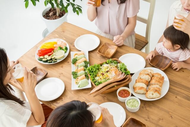 朝から準備に追われているため食事も手作り…となるとなかなか大変ですが、料理をテイクアウトして持ち寄れば、自宅でも十分お祝いの食事を楽しむことができますよ。子どもたちもリラックスして楽しむことができるので、費用を抑えるためにも子どもたちのためにも、自宅での会食を検討してみては?