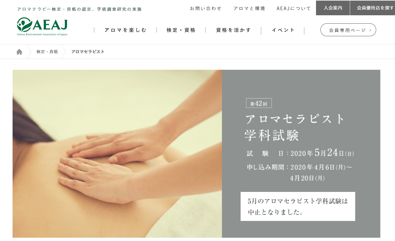アロマテラピー検定と同様に「公益社団法人 日本アロマ環境協会」(AEAJ)が実施している、より難易度の高い検定試験です。 まずアロマテラピー検定1級に合格し、次にアロマテラピーアドバイザー資格を取得し、認定スクールでアロマセラピスト必須履修科目を修了した後にやっと受験をすることができます。 学科試験に合格した後に、さらに実技試験とカルテ演習を経てやっと取得となります。