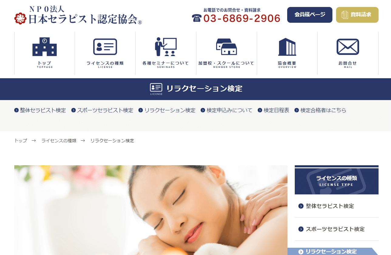 2010年から「一般社団法人 日本リラクゼーション業協会」が実施している、リラクゼーションに関する唯一の資格。 すでに働いている人も技術の向上に役立つほか、この資格を取得しているセラピストは宣伝効果もあるので、お店に貢献できるというメリットもあるようですね。