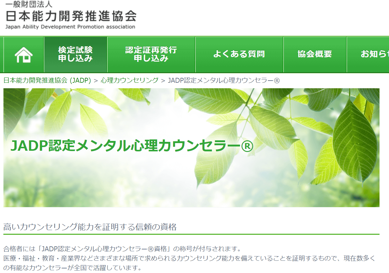 JADP認定メンタル心理カウンセラー