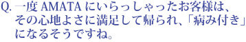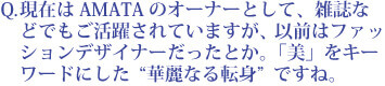 AMATAの何号店を出店するということじゃなく、今度は日本にないサロンを作ってみたいですね。 テーマは「大人」。個人としては製品のプロデュースをしたいですね。 日本古来の伝統を活かしたようなこれまでになかったプロダクトを手がけてみたい。