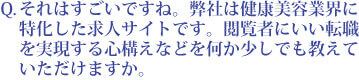 まずビューティーの世界についていえば、美への追求度が高い人には面白い世界です。 薬剤やケア用品などどんどん進化していきますし、それを熟知して使いこなして女性を美しくすることに大きな醍醐味があります。 就職については、私も経営者の立場で面接することがありますが、一番大事なのは自分をアピールすること。 もちろん、ただ大きな声で「頑張ります」ではなく、自分がほかの人と違ってどんな体験をしてきて、どんなことが出来るのかをしっかりと伝えることです。 単にでしゃばるのではなく、自分を会社に売り込むんです。そこにやる気が感じられれば、いい結果が待っていると思います。 逆に本人は意識していなくても、なんとなく「どうでもいい」ようなムードを醸していたら、それは確実に相手にも伝わってしまいます。