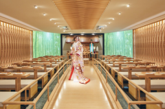 水と光のシャワーが降り注ぐ12メートルのバージンロードが幻想的なチャペルや、紫の雲をイメージした鮮やかな絨毯、色とりどりの伝統美が織り成す紫雲殿が素敵な会場です。