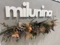 玄関入ると最初にmiluninaのサインが出てきます。 その下にはブ...