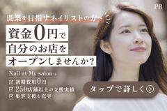 0円でネイルサロン開業、出店場所自由、集客あり!ネイルアットマイサロン【売上の60%~75%が手取り収入】自分だけのネイルサロン創り♪180店舗運営の確かな実績。月報酬平均42万円、最高84万円★広告費支給!!