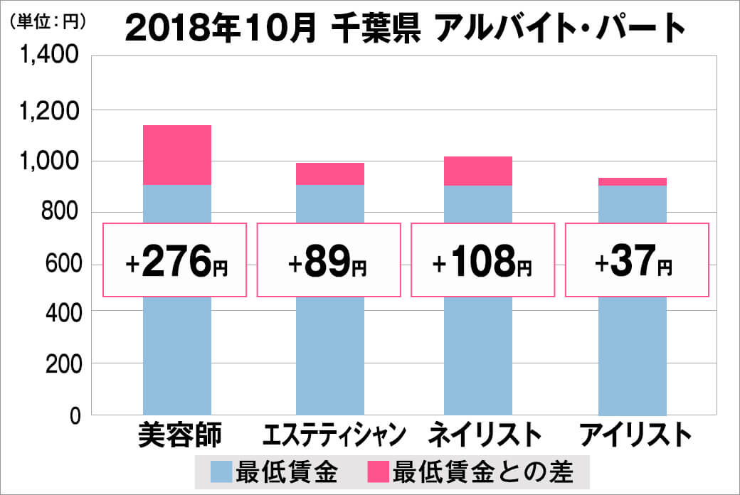 2018年10月時点で『美プロ』に掲載されている「千葉県」の「美容師・エステティシャン・ネイリスト・アイリスト」求人原稿における「正社員」「アルバイト・パート」の給料を抽出。