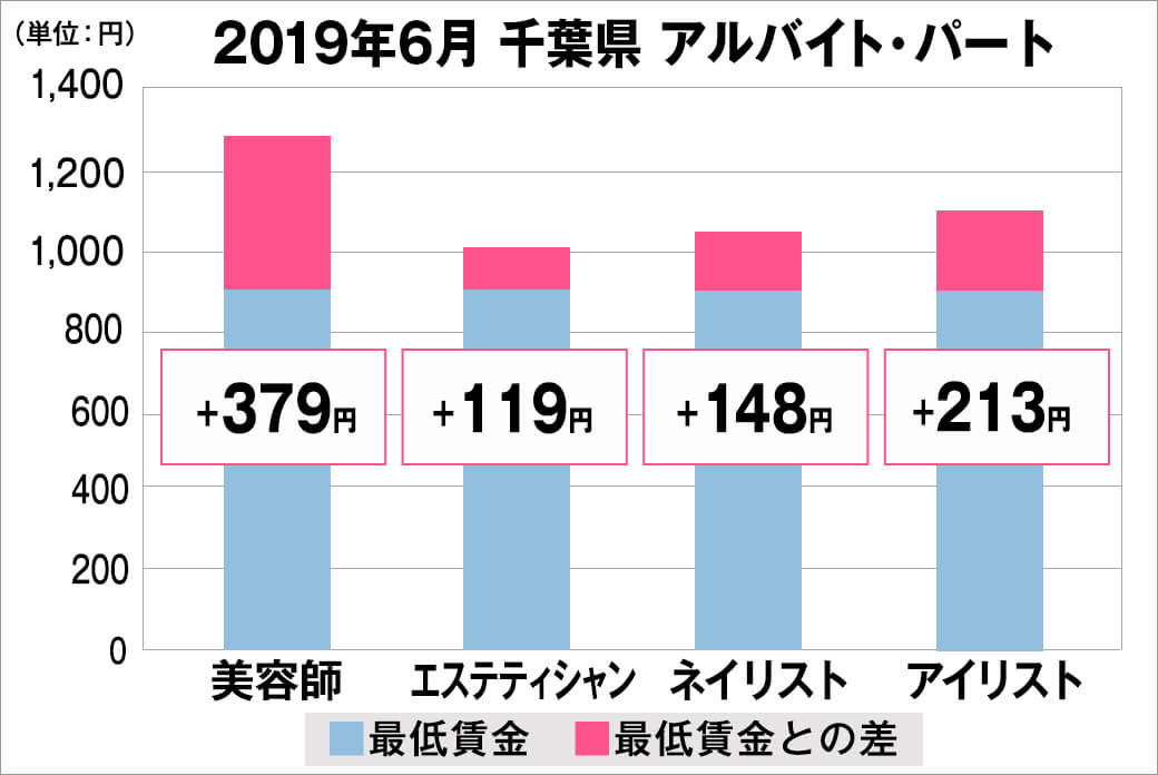 2019年06月時点で『美プロ』に掲載されている「千葉県」の「美容師・エステティシャン・ネイリスト・アイリスト」求人原稿における「正社員」「アルバイト・パート」の給料を抽出。