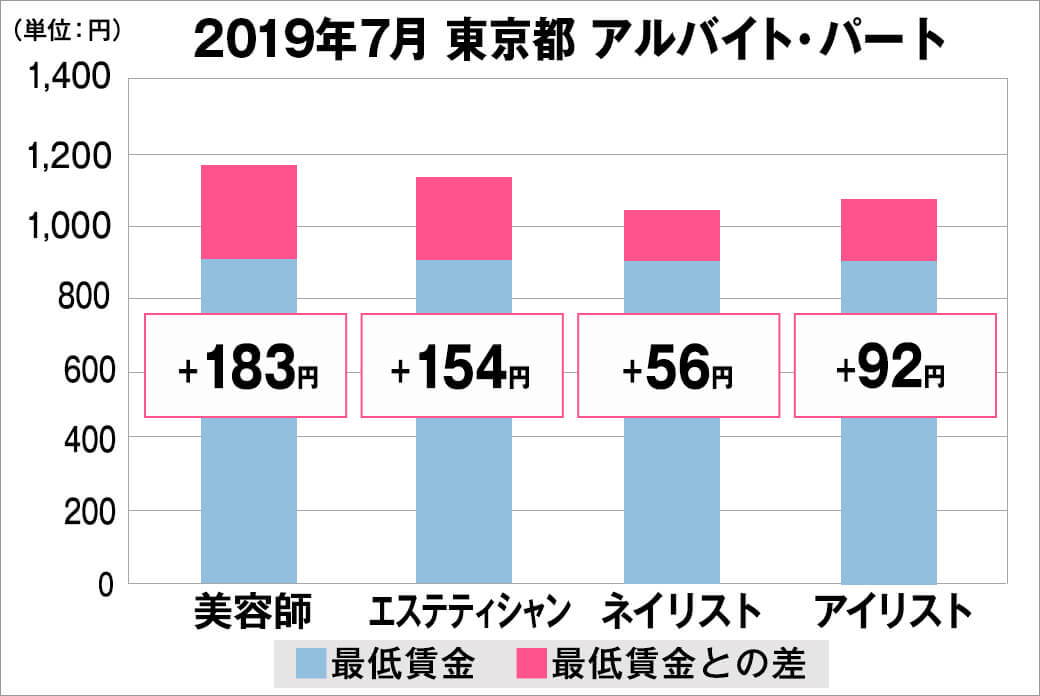 2019年07月より「最低賃金から見る美容業界の給料調査」を実施しました。本調査は、美容業界専門の求人サイト『美プロ』に掲載されている求人募集時の給料を抽出し、職種別・雇用形態別・地域別の最低賃金との差を算出しました。