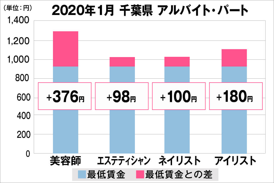 2020年1月時点で『美プロ』に掲載されている「千葉県」の「美容師・エステティシャン・ネイリスト・アイリスト」求人原稿における「正社員」「アルバイト・パート」の給料を抽出。
