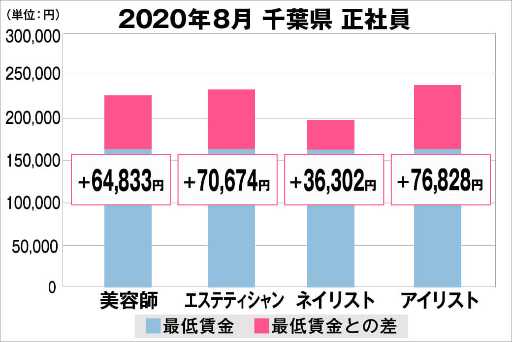 2020年8月時点で『美プロ』に掲載されている「千葉県」の「美容師・エステティシャン・ネイリスト・アイリスト」求人原稿における「正社員」「アルバイト・パート」の給料を抽出。