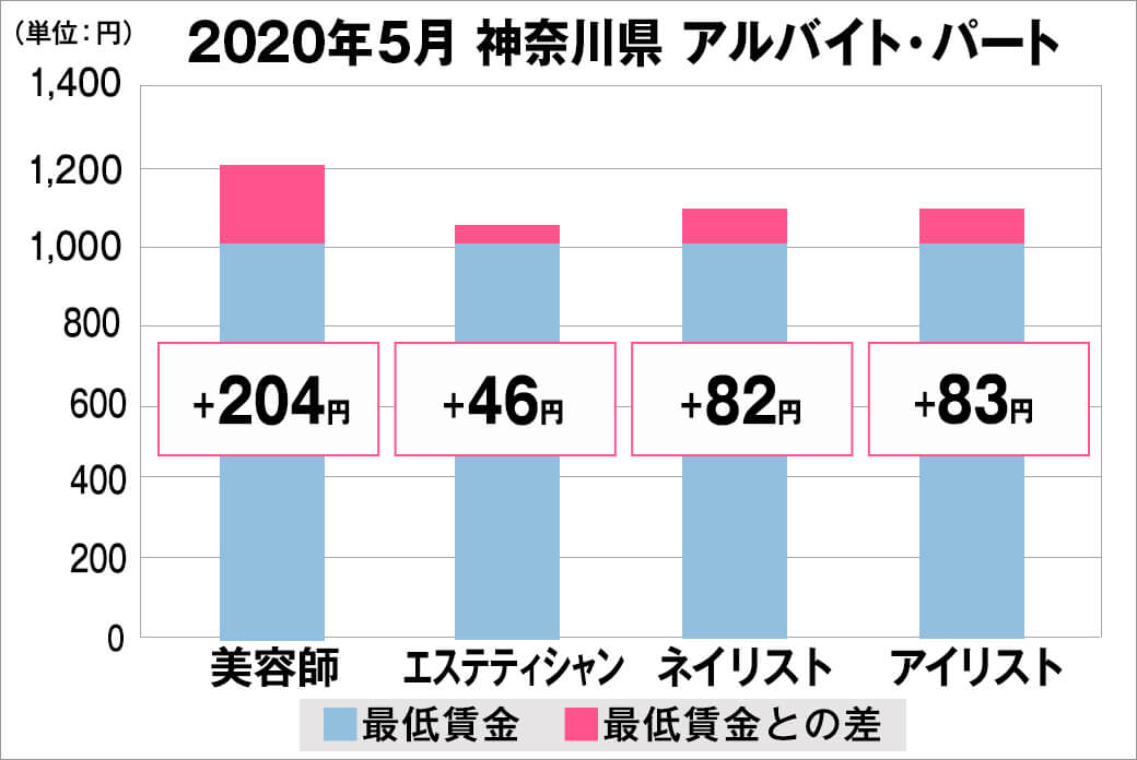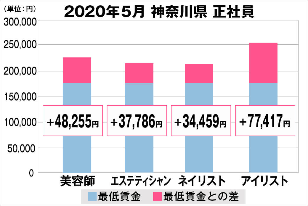 2020年5月時点で『美プロ』に掲載されている「神奈川県」の「美容師・エステティシャン・ネイリスト・アイリスト」求人原稿における「正社員」「アルバイト・パート」の給料を抽出。