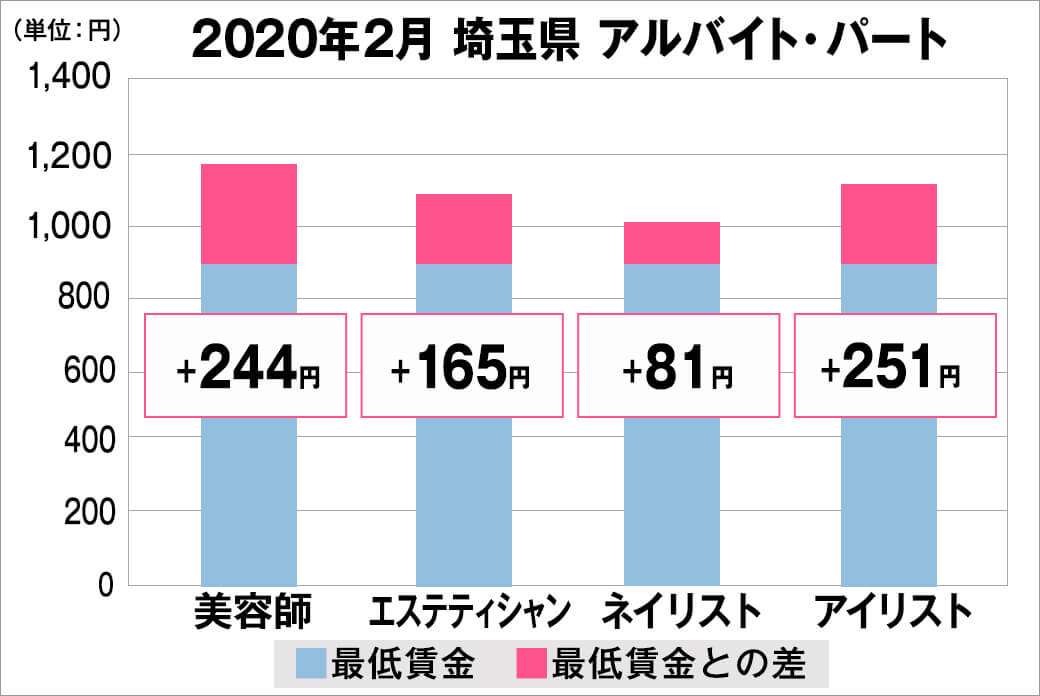 2020年2月時点で『美プロ』に掲載されている「埼玉県」の「美容師・エステティシャン・ネイリスト・アイリスト」求人原稿における「正社員」「アルバイト・パート」の給料を抽出。