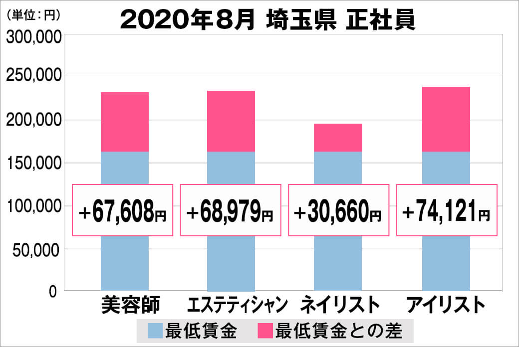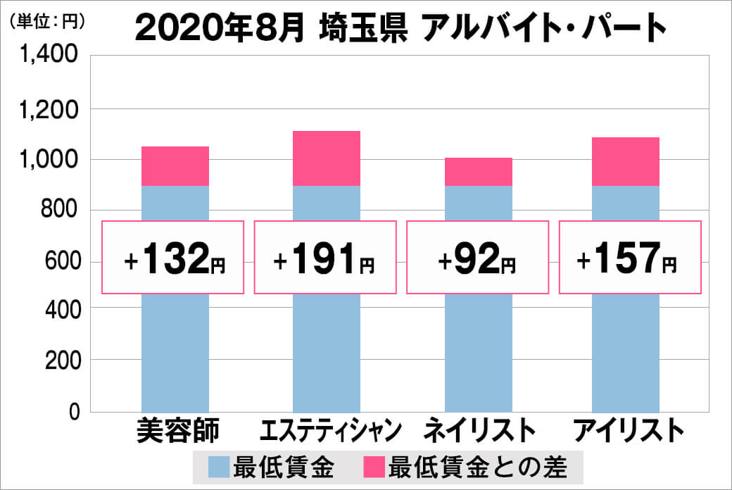 2020年8月時点で『美プロ』に掲載されている「埼玉県」の「美容師・エステティシャン・ネイリスト・アイリスト」求人原稿における「正社員」「アルバイト・パート」の給料を抽出。