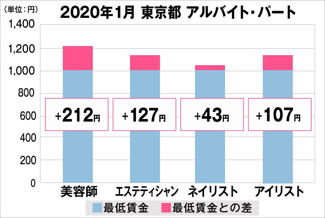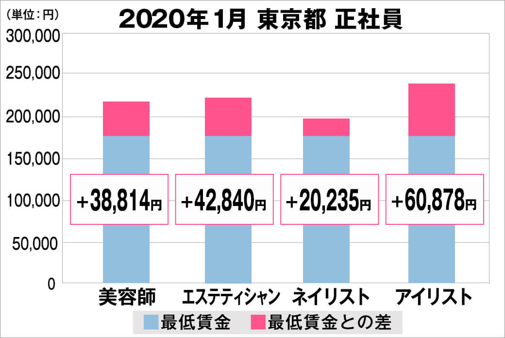 2020年1月時点で『美プロ』に掲載されている「東京都」の「美容師・エステティシャン・ネイリスト・アイリスト」求人原稿における「正社員」「アルバイト・パート」の給料を抽出。