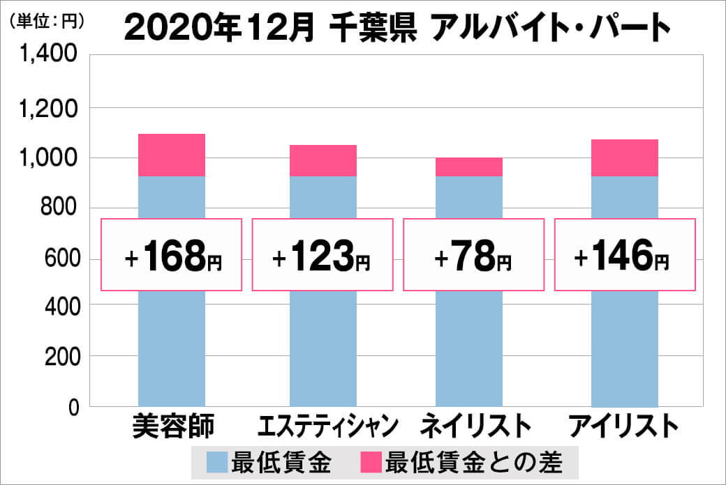 2020年12月時点で『美プロ』に掲載されている「千葉県」の「美容師・エステティシャン・ネイリスト・アイリスト」求人原稿における「正社員」「アルバイト・パート」の給料を抽出。