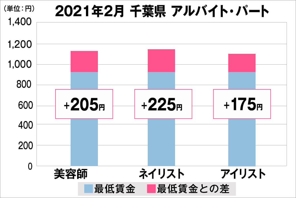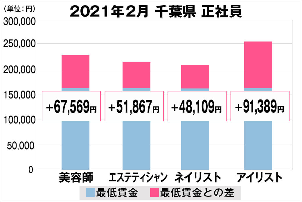 2021年2月時点で『美プロ』に掲載されている「千葉県」の「美容師・エステティシャン・ネイリスト・アイリスト」求人原稿における「正社員」「アルバイト・パート」の給料を抽出。