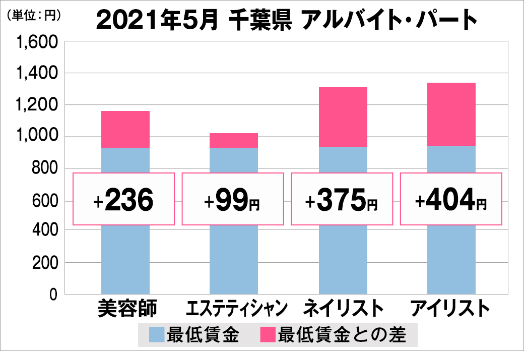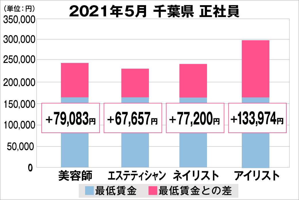 2021年5月時点で『美プロ』に掲載されている「千葉県」の「美容師・エステティシャン・ネイリスト・アイリスト」求人原稿における「正社員」「アルバイト・パート」の給料を抽出。