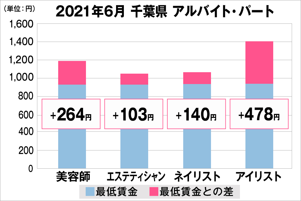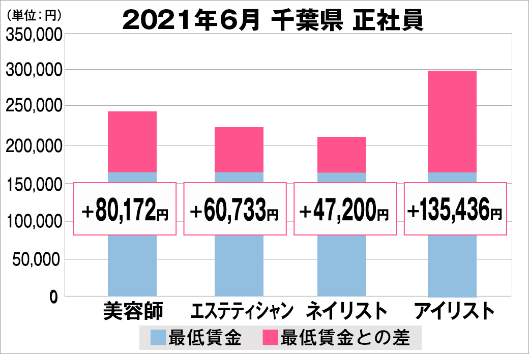 2021年6月時点で『美プロ』に掲載されている「千葉県」の「美容師・エステティシャン・ネイリスト・アイリスト」求人原稿における「正社員」「アルバイト・パート」の給料を抽出。