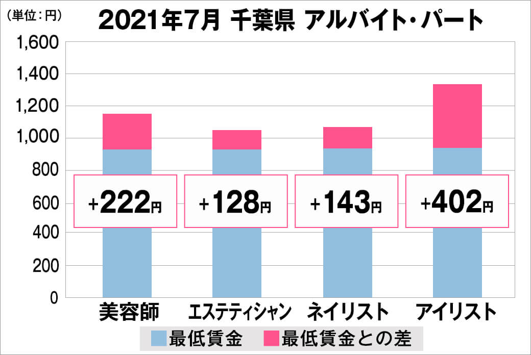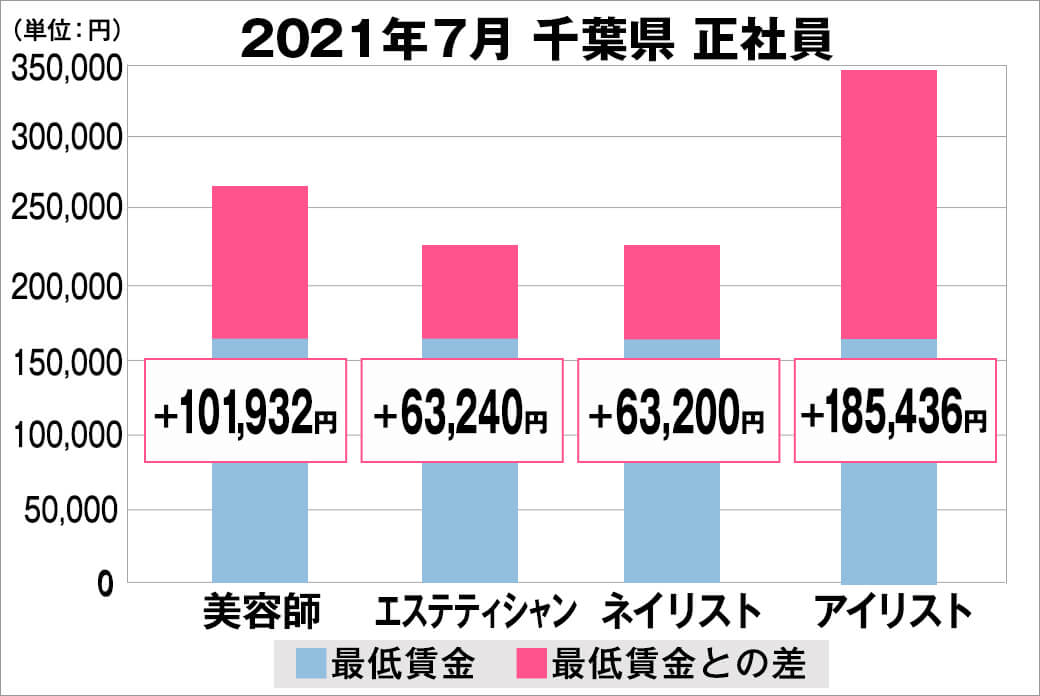 2021年7月時点で『美プロ』に掲載されている「千葉県」の「美容師・エステティシャン・ネイリスト・アイリスト」求人原稿における「正社員」「アルバイト・パート」の給料を抽出。