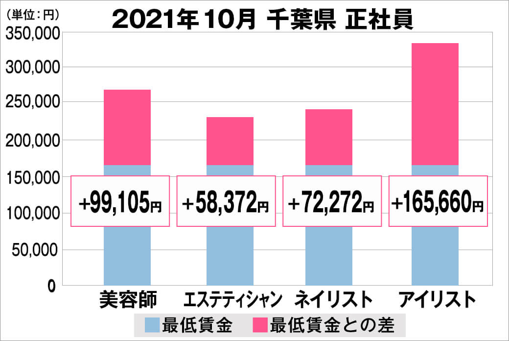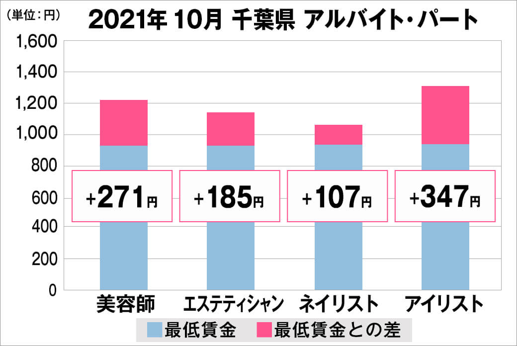 2021年10月時点で『美プロ』に掲載されている「千葉県」の「美容師・エステティシャン・ネイリスト・アイリスト」求人原稿における「正社員」「アルバイト・パート」の給料を抽出。