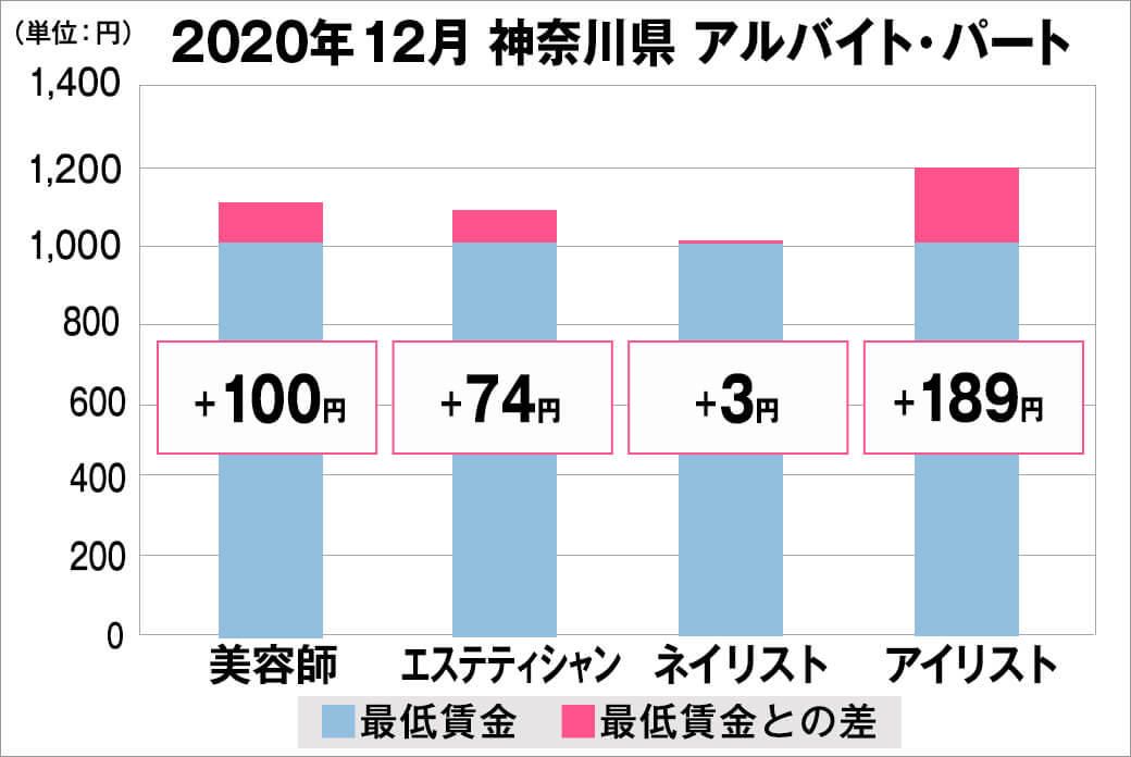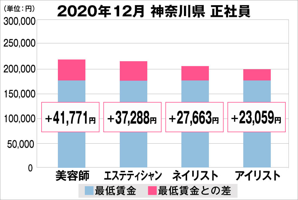 2020年12月時点で『美プロ』に掲載されている「神奈川県」の「美容師・エステティシャン・ネイリスト・アイリスト」求人原稿における「正社員」「アルバイト・パート」の給料を抽出。