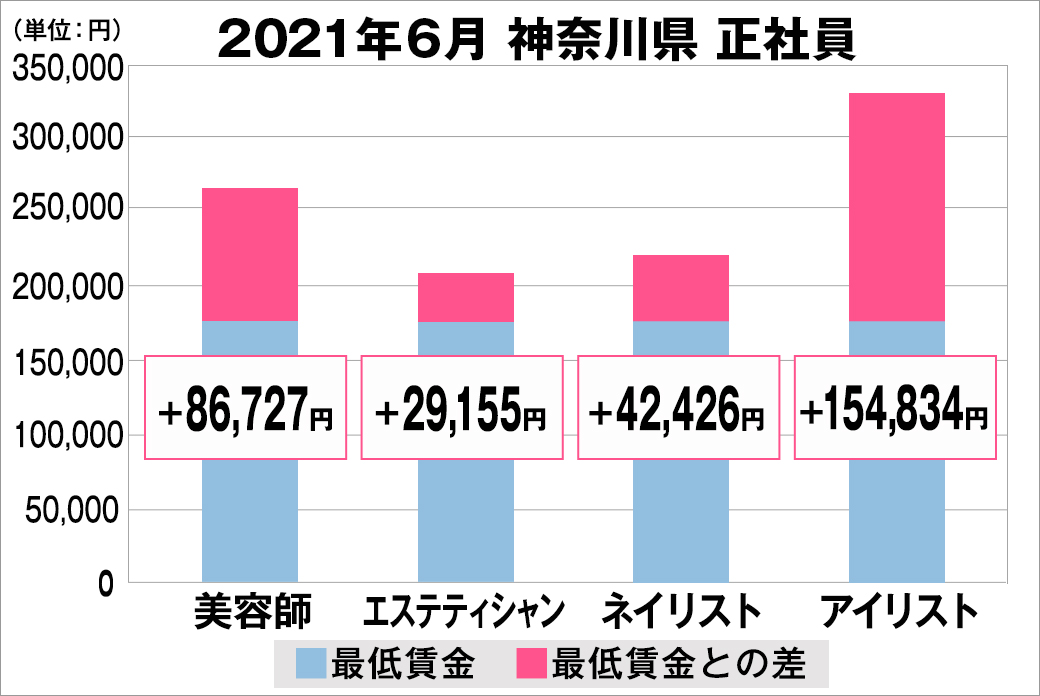 2021年6月時点で『美プロ』に掲載されている「神奈川県」の「美容師・エステティシャン・ネイリスト・アイリスト」求人原稿における「正社員」「アルバイト・パート」の給料を抽出。