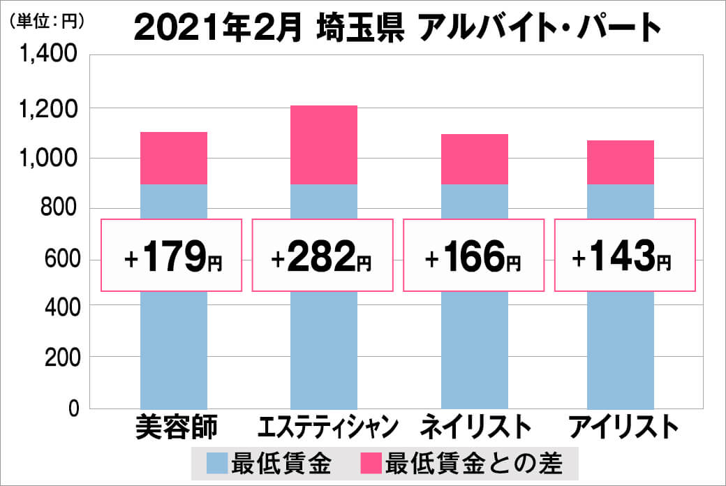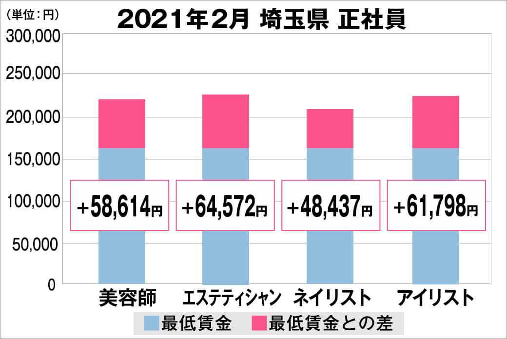 2021年2月時点で『美プロ』に掲載されている「埼玉県」の「美容師・エステティシャン・ネイリスト・アイリスト」求人原稿における「正社員」「アルバイト・パート」の給料を抽出。