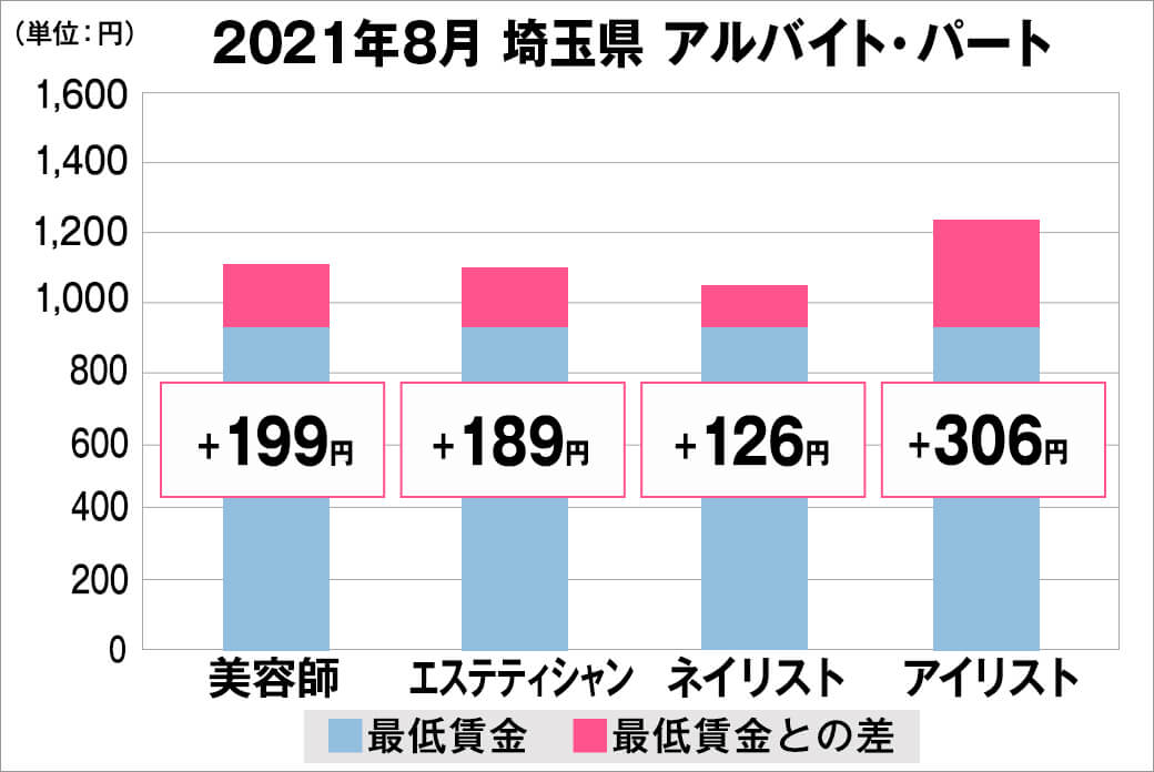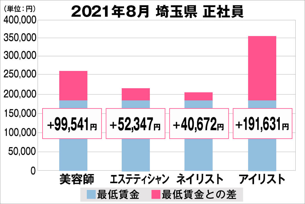 2021年8月時点で『美プロ』に掲載されている「埼玉県」の「美容師・エステティシャン・ネイリスト・アイリスト」求人原稿における「正社員」「アルバイト・パート」の給料を抽出。