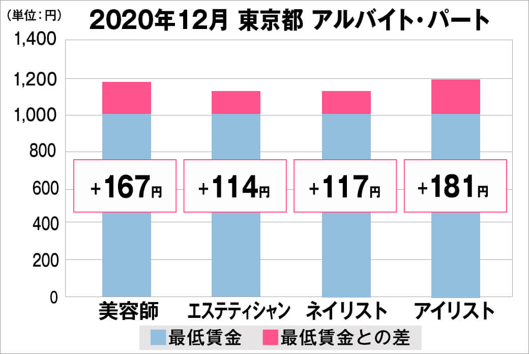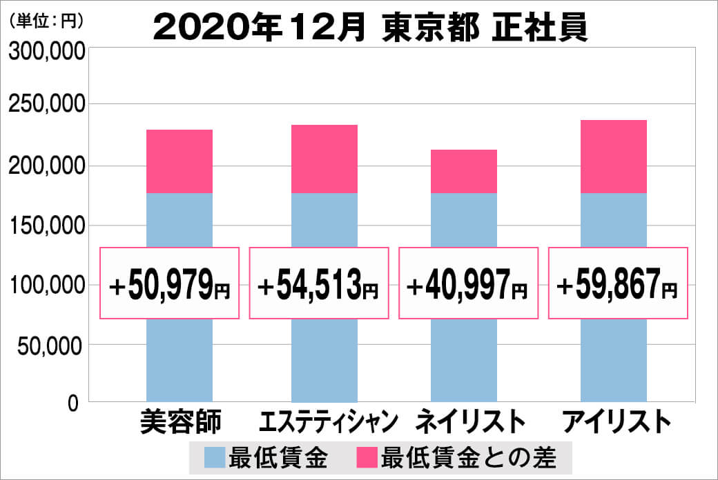 2020年12月時点で『美プロ』に掲載されている「東京都」の「美容師・エステティシャン・ネイリスト・アイリスト」求人原稿における「正社員」「アルバイト・パート」の給料を抽出。