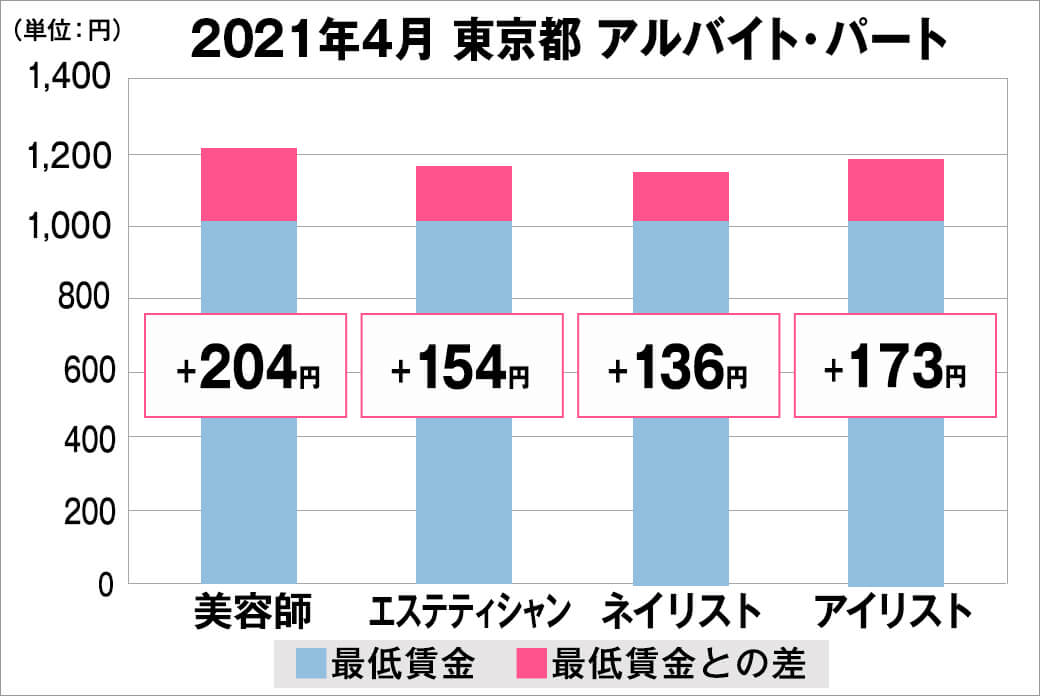 2021年4月時点で『美プロ』に掲載されている「東京都」の「美容師・エステティシャン・ネイリスト・アイリスト」求人原稿における「正社員」「アルバイト・パート」の給料を抽出。