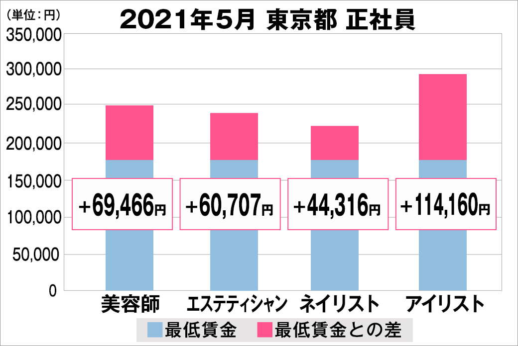2021年5月における「最低賃金から見る美容業界の給料調査」を実施しました。 本調査は、美容業界専門の求人サイト『美プロ』に掲載されている求人募集時の給料を抽出し、職種別・雇用形態別・地域別の最低賃金との差を算出しました。