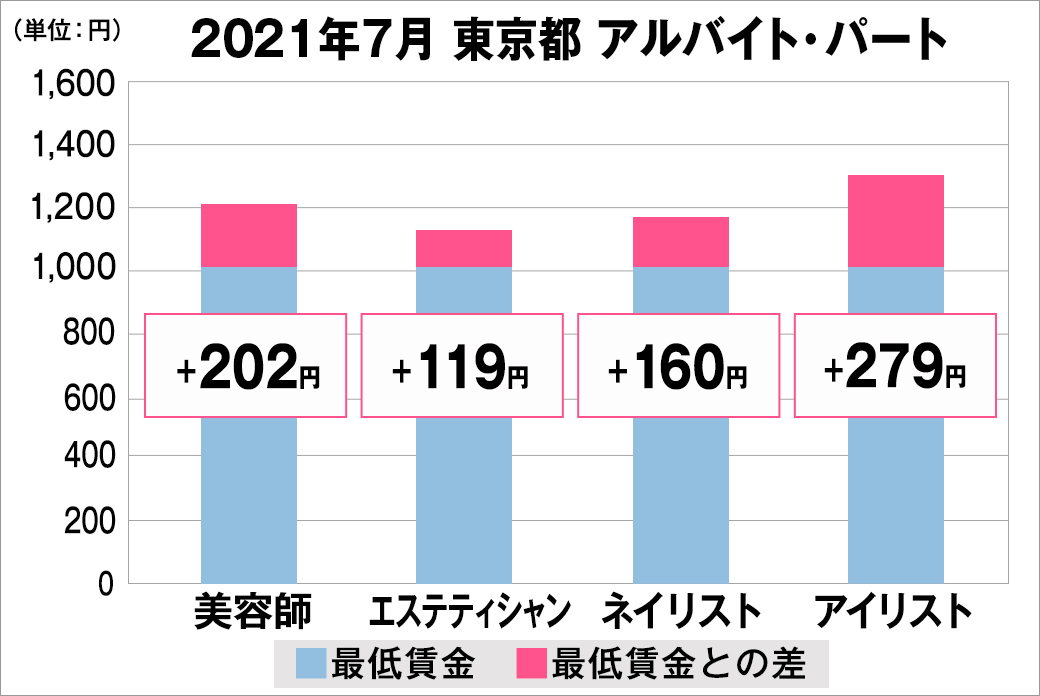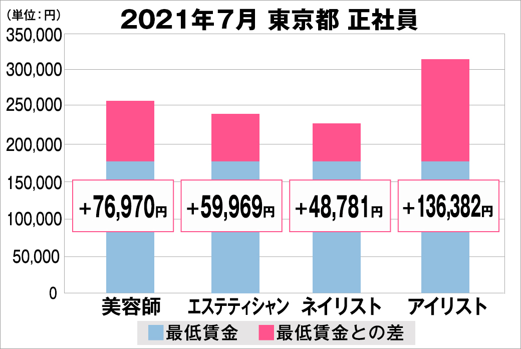 2021年7月における「最低賃金から見る美容業界の給料調査」を実施しました。 本調査は、美容業界専門の求人サイト『美プロ』に掲載されている求人募集時の給料を抽出し、職種別・雇用形態別・地域別の最低賃金との差を算出しました。