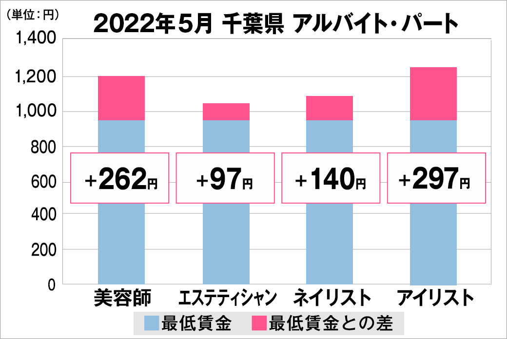 2022年5月時点で『美プロ』に掲載されている「千葉県」の「美容師・エステティシャン・ネイリスト・アイリスト」求人における「正社員」「アルバイト・パート」の給料を抽出。