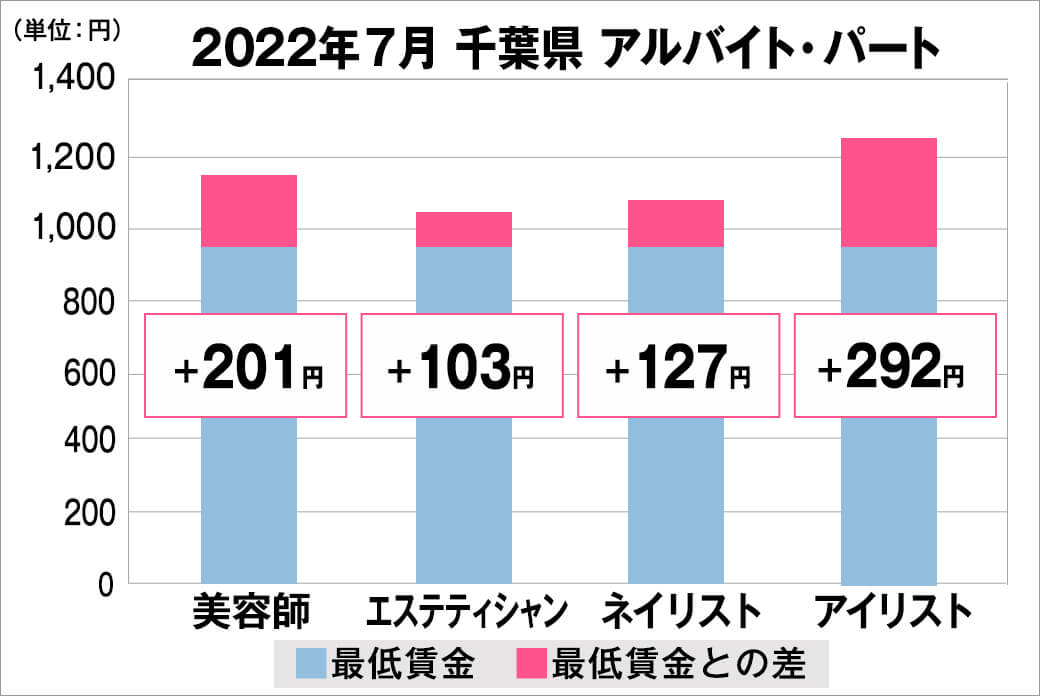 2022年7月時点で『美プロ』に掲載されている「千葉県」の「美容師・エステティシャン・ネイリスト・アイリスト」求人における「正社員」「アルバイト・パート」の給料を抽出。