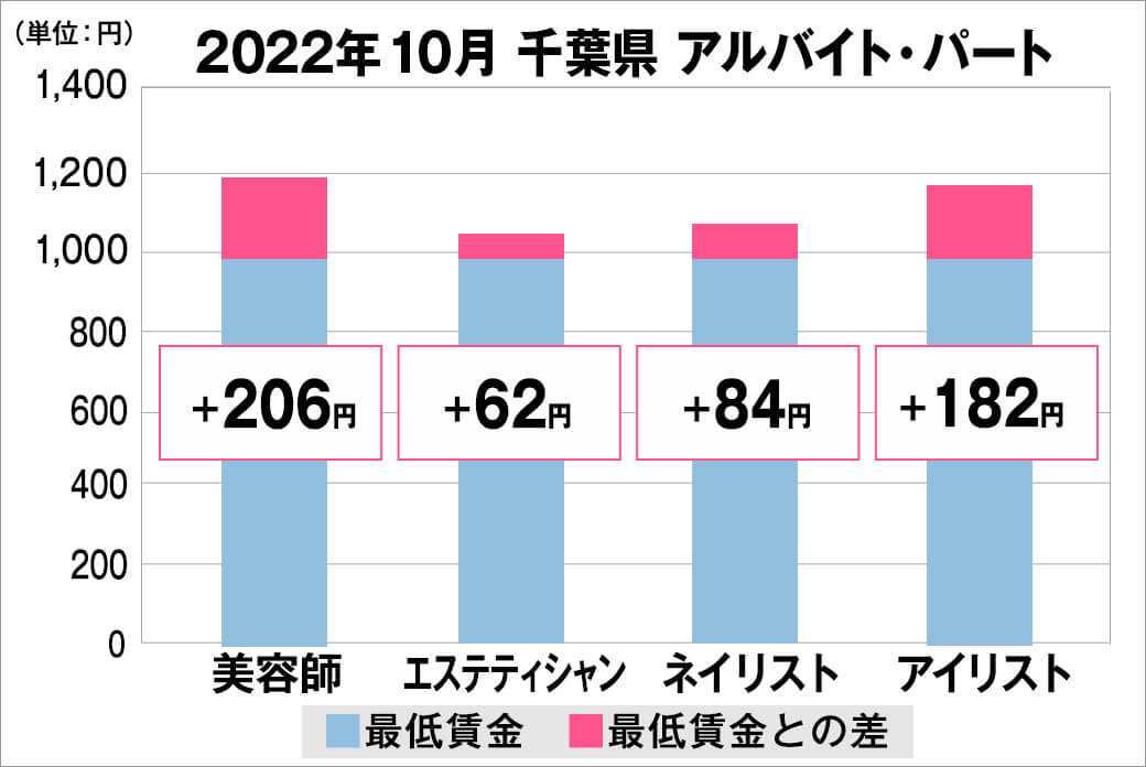 2022年10月時点で『美プロ』に掲載されている「千葉県」の「美容師・エステティシャン・ネイリスト・アイリスト」求人における「正社員」「アルバイト・パート」の給料を抽出。