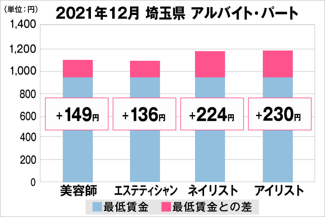 2021年12月時点で『美プロ』に掲載されている「埼玉県」の「美容師・エステティシャン・ネイリスト・アイリスト」求人原稿における「正社員」「アルバイト・パート」の給料を抽出。