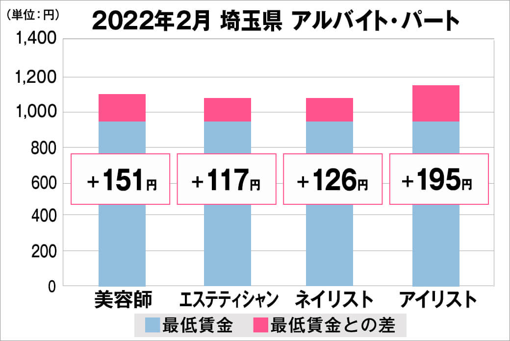 2022年2月時点で『美プロ』に掲載されている「埼玉県」の「美容師・エステティシャン・ネイリスト・アイリスト」求人原稿における「正社員」「アルバイト・パート」の給料を抽出。